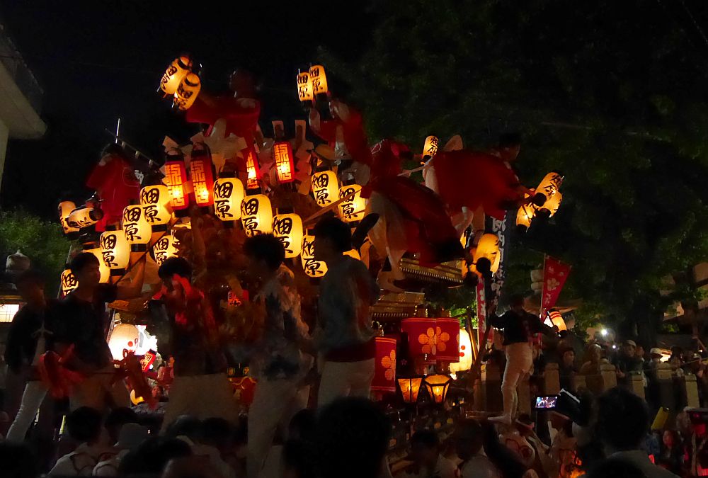 屋根方は提灯を高く掲げて静止、お囃子だけが響きます。