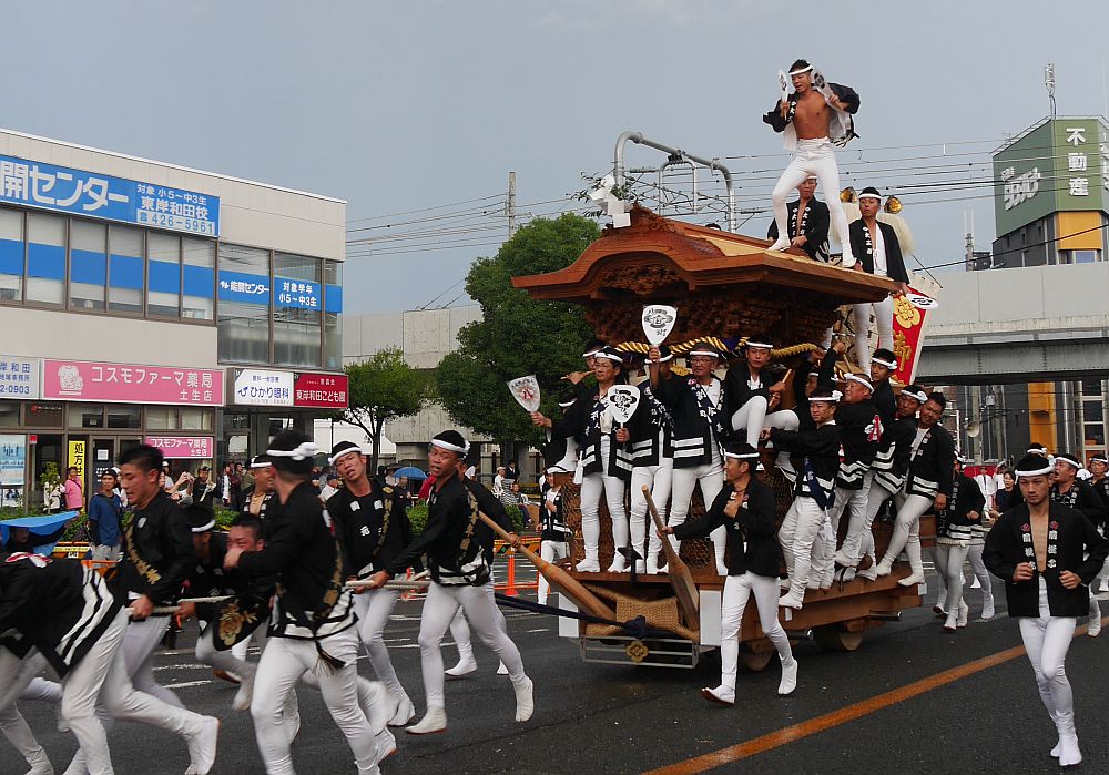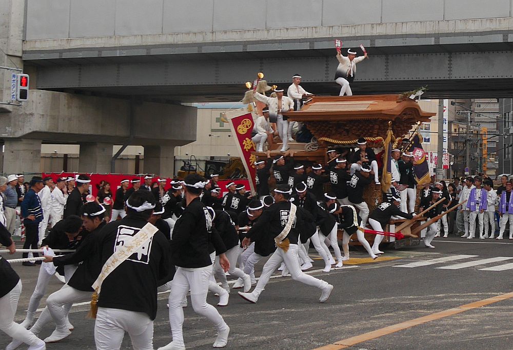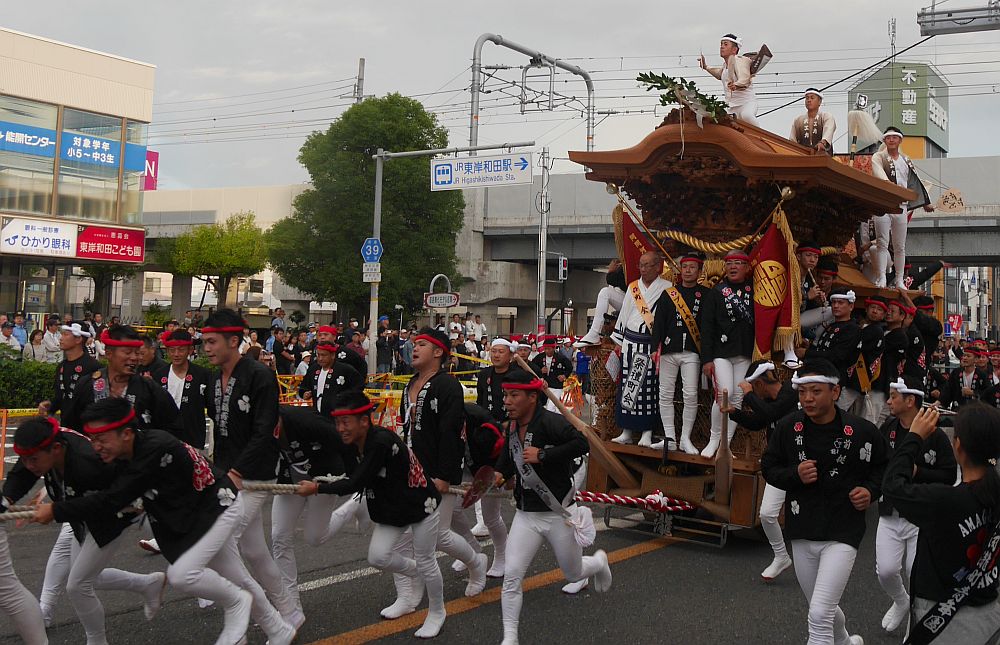 では、岸和田市の東岸和田連合曳き出し画像その1をご覧下さい。