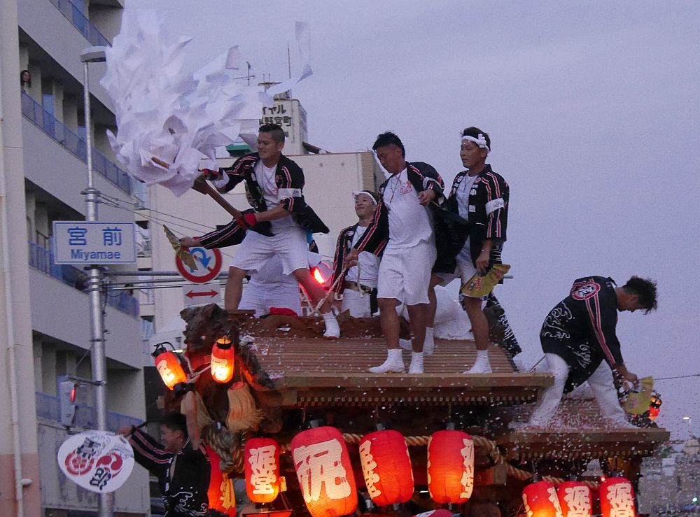 午後7時過ぎ、まもなく泥堂町宮入です。