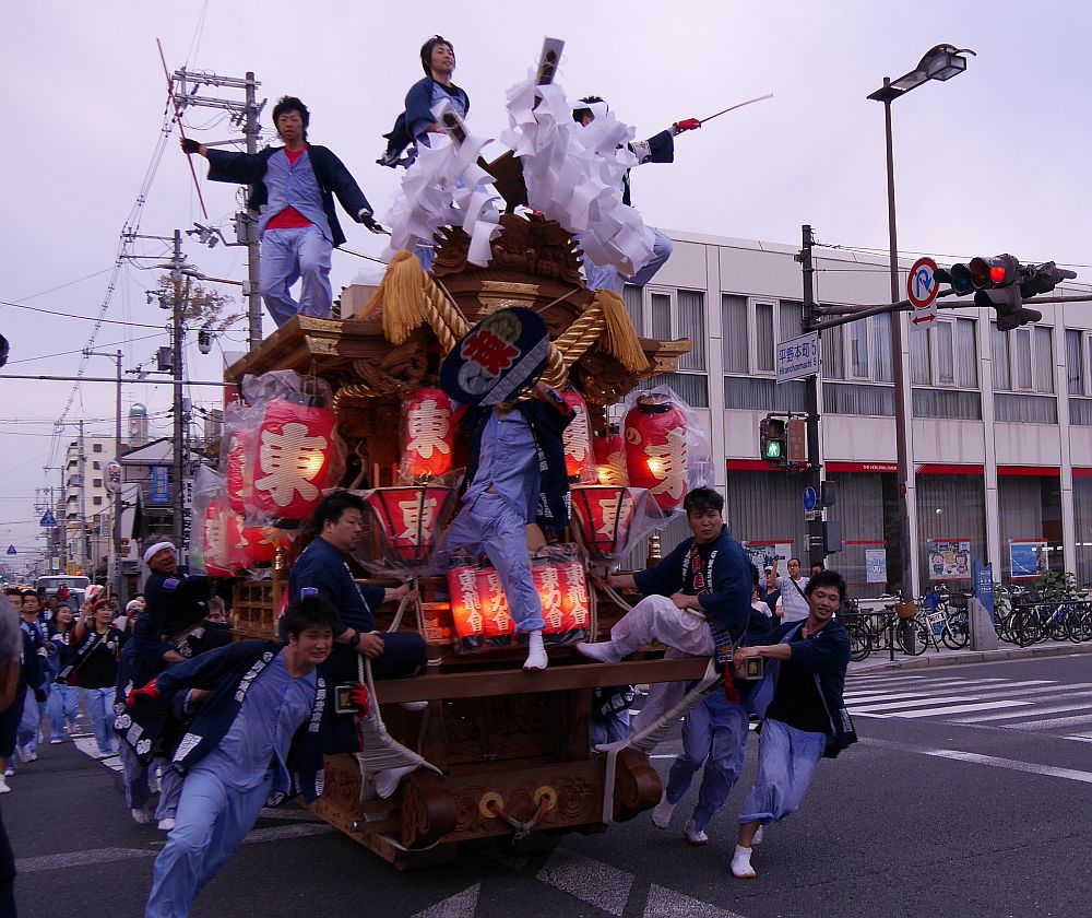 午後7時過ぎ、南港通りの南側地区を曳行する野堂町南組