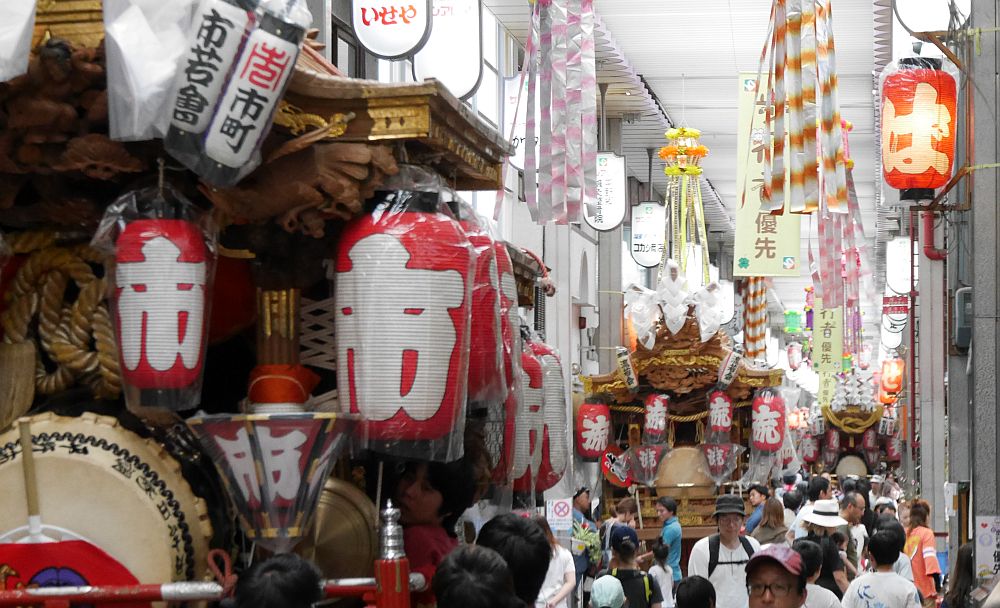 平成30年6月24日、平野区の平野郷夏祭り前夜祭を見に行ってきました。 地元の人にだんじりを身近に楽しんでもらい、さらに商店街の活性化に繋げたい という思いが込められて始まった前夜祭も今年で5年目。 平野本町の「サンアレイ平野通商店街」と「平野中央本通商店街」に平野郷の 地車9台が整列しました。 まずは商店街に9台の地車が整列した直後の商店街画像と各町地車画像を 紹介します。 では、平野区の平野郷夏祭り前夜祭画像その1をご覧下さい。