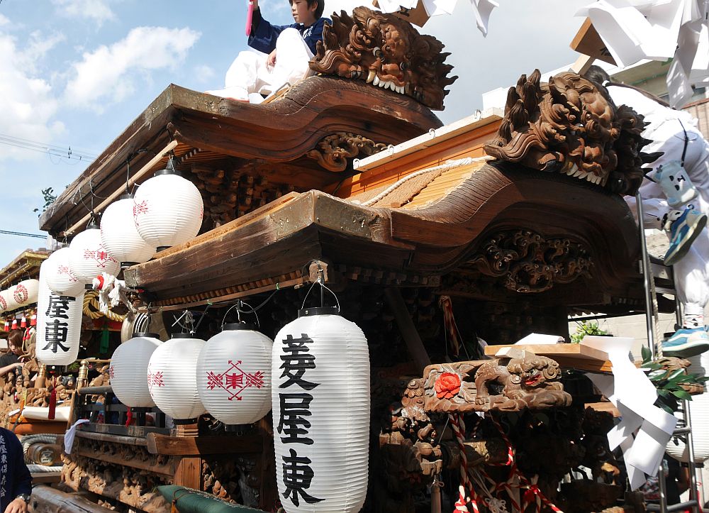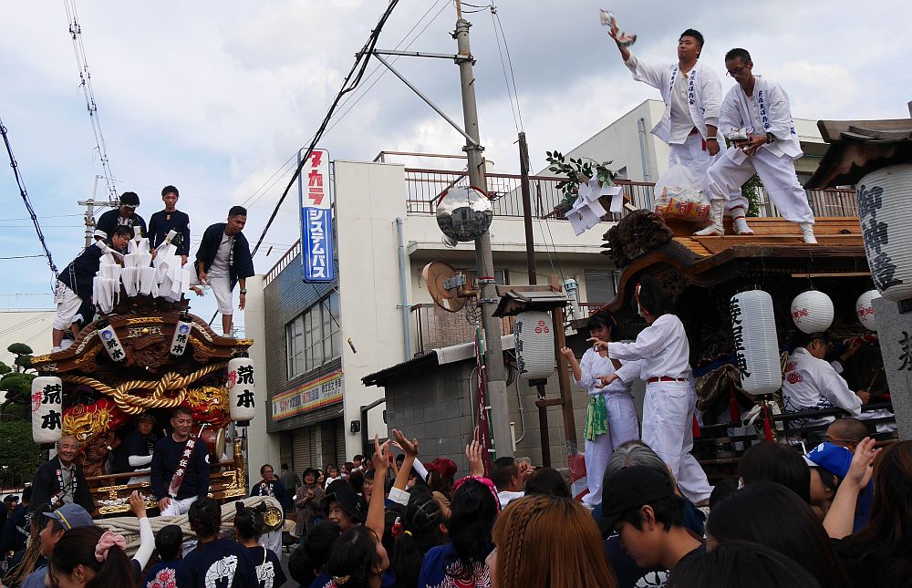 では、東大阪市の菱屋東八剱神社3町地車宮入画像その1をご覧下さい。