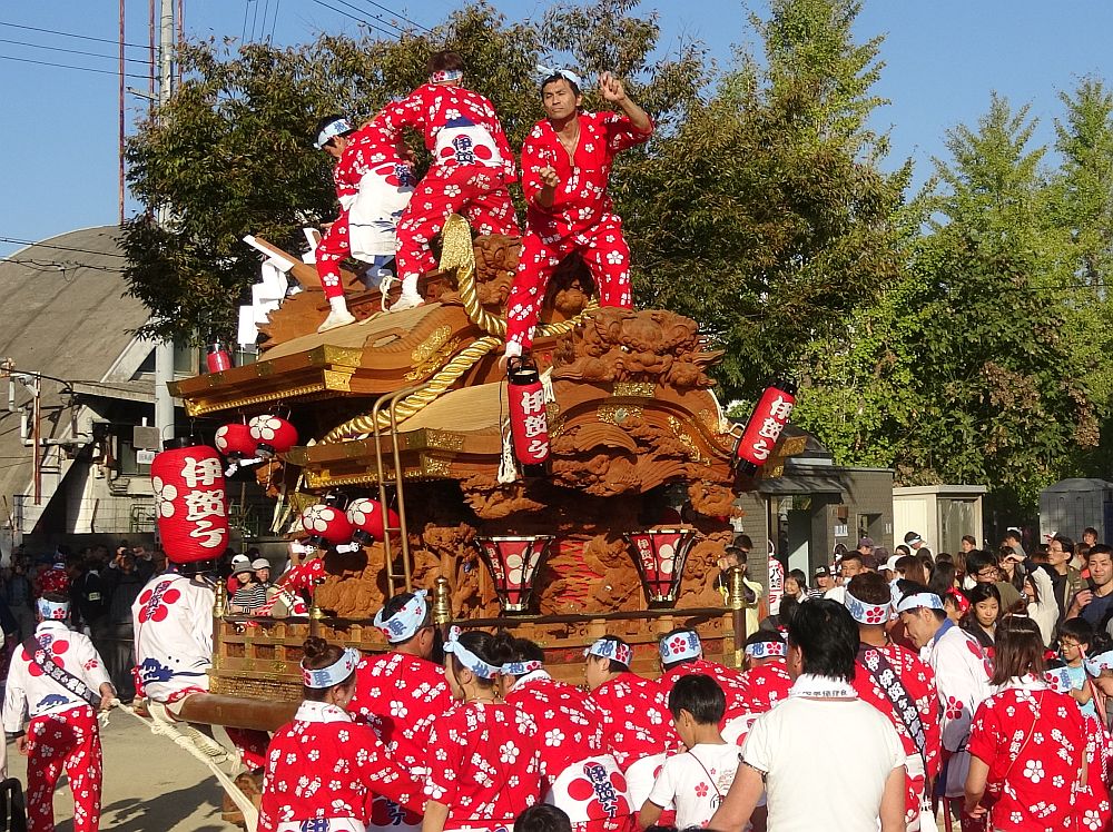 生野の地車13台と太鼓台1基が集結したところから見物開始、その後の全町