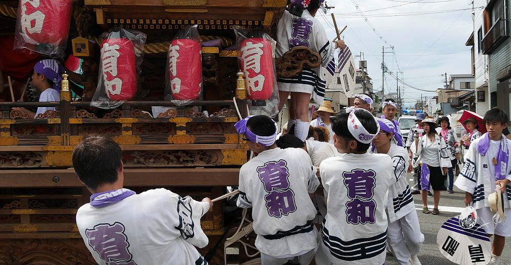 村中へ入ると曳き綱がつけられました。