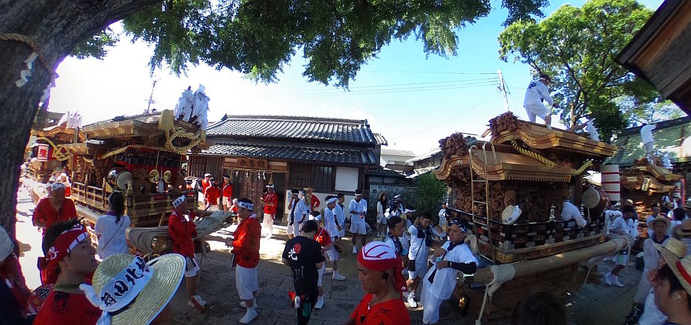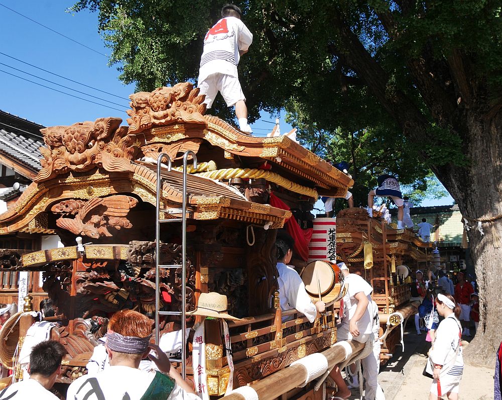 秋祭りには5台の地車の宮入やパレードがあり賑やかですが、夏は日程がバラバラで