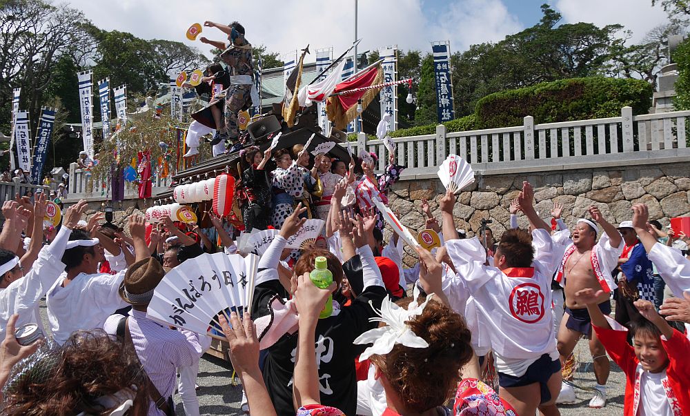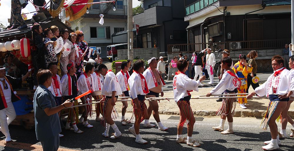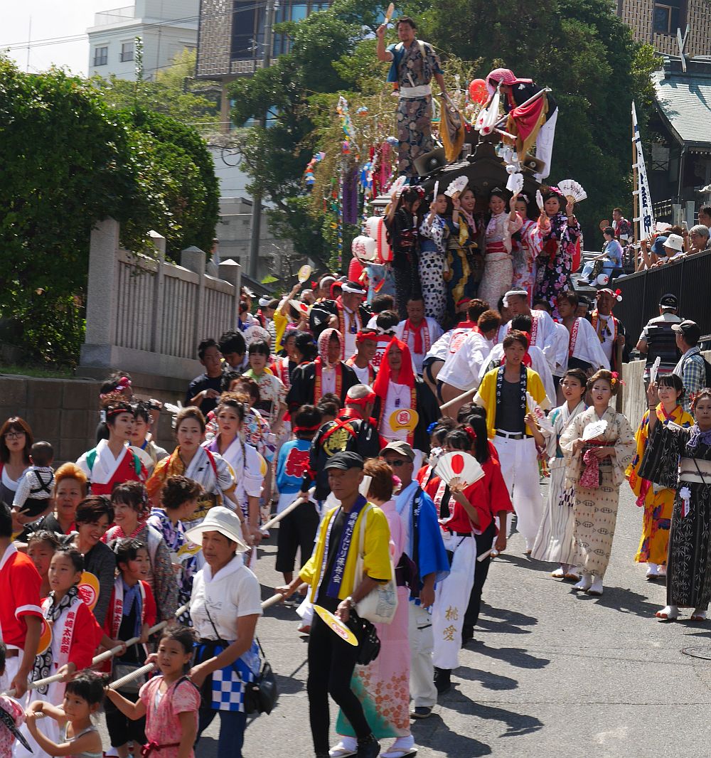 鵜崎地車の前には着物を着た床組さんの女性が乗って