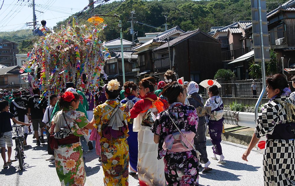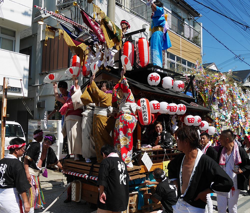 平成30年9月16日、淡路市岩屋の岩屋だんじり祭りを見に行ってきました。 今年の秋は住民投票の結果、鵜崎、神の前・田の代(神代)、片濱の3台の 出場が決まったそうで、早速見に行ってきました。 私は本宮の午前11時頃から午後6時半頃まで、石屋(いわや)神社宮入、 商店街曳行、八幡神社宮入を中心に見て回ってきました。 ここでは神代の岩屋商店街曳行を紹介します。 では、淡路市岩屋の岩屋だんじり祭り画像その6:神代の商店街曳行をご覧下さい。