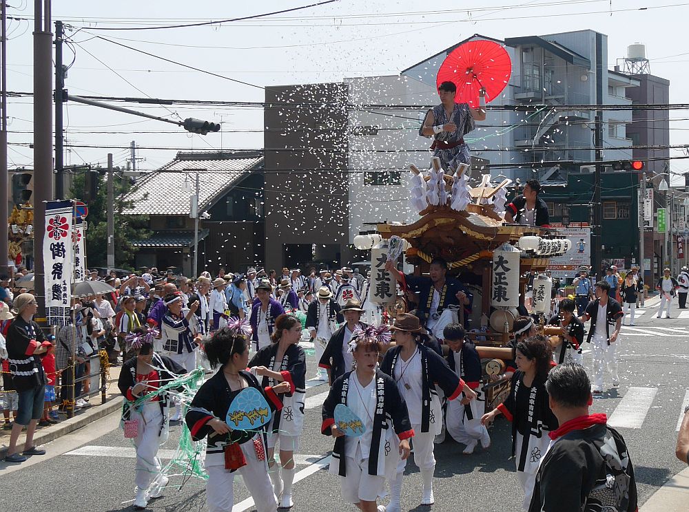 メインストリートの先に布団太鼓2基の姿が見えます。