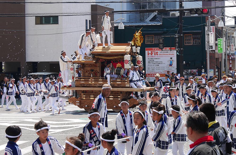 前方、本郷の布団太鼓がメインストリートを進みます。