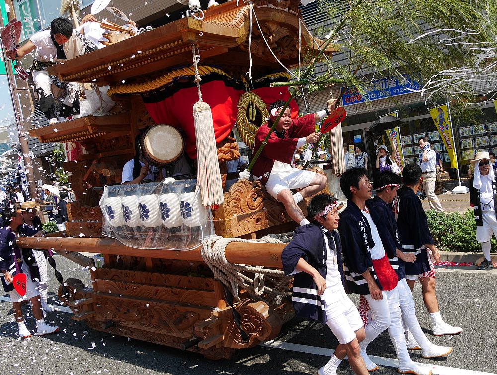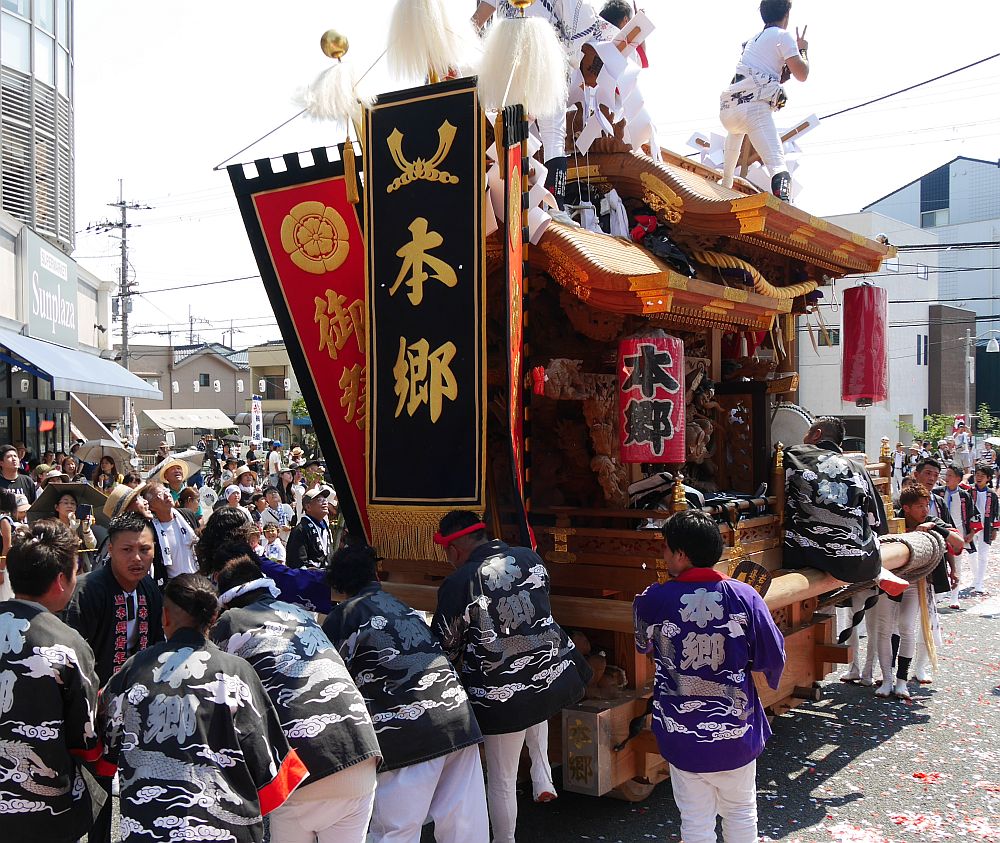 大正東、上市、本郷、大正西、古町、今町の順に6台の地車が駅前の