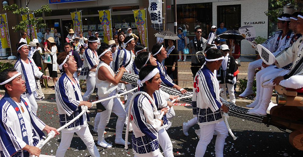 土曜夜のパレードを見たり、日曜午後のパレードを見たり、そして村中曳行を