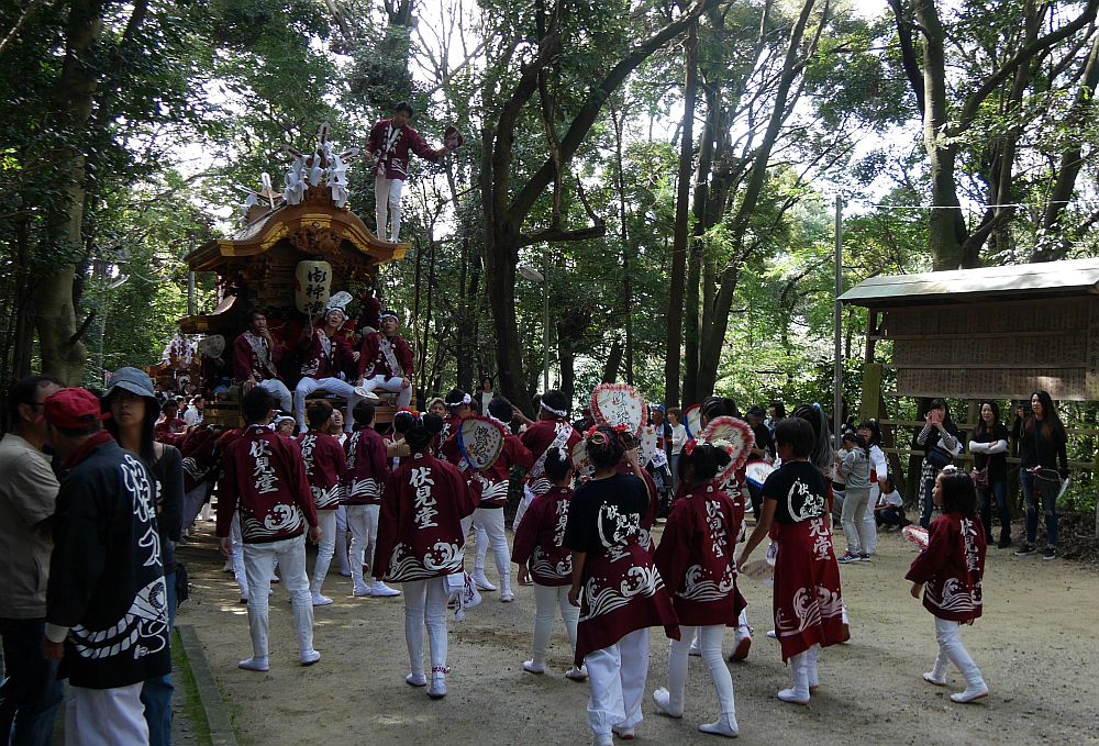 こちらに正面向けて下がっていく伏見堂地車
