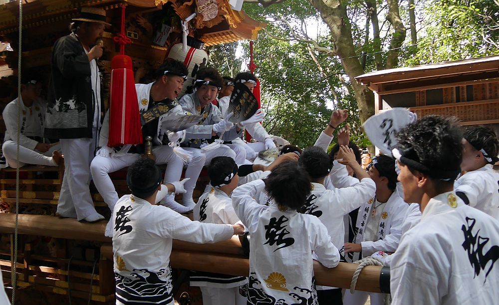 地車の前方で曳き唄に合わせて声を出す嬉ガールズ