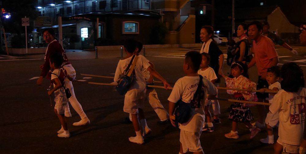 曳き綱が左折していきます。