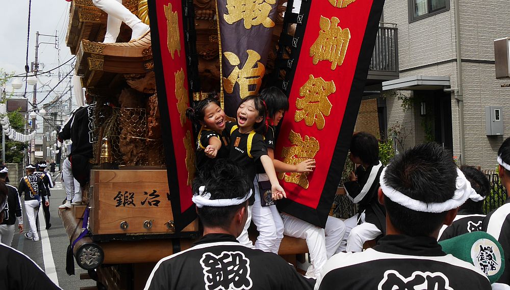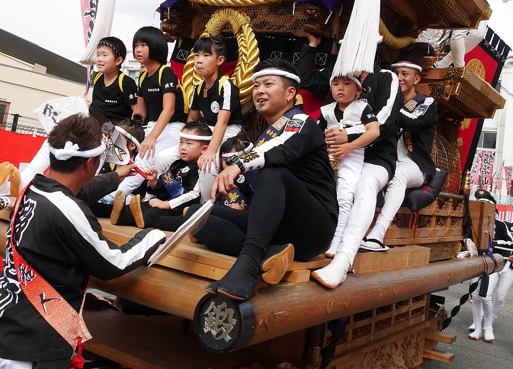 鍛冶町も地車の前には子供たちが乗っていますね。