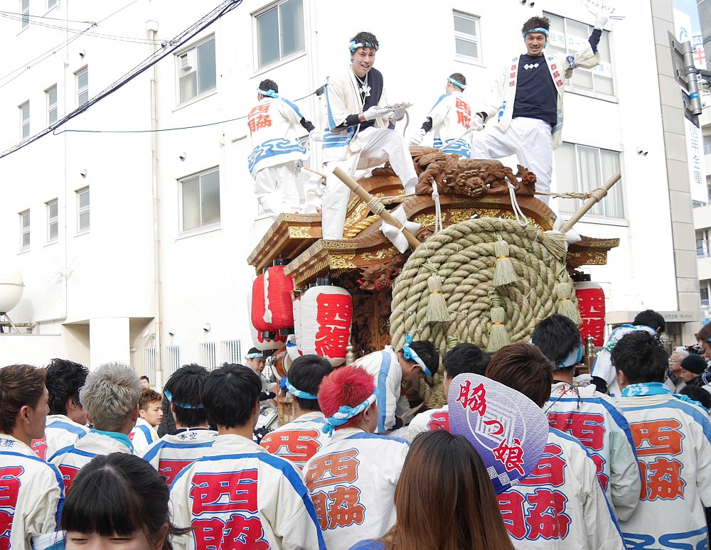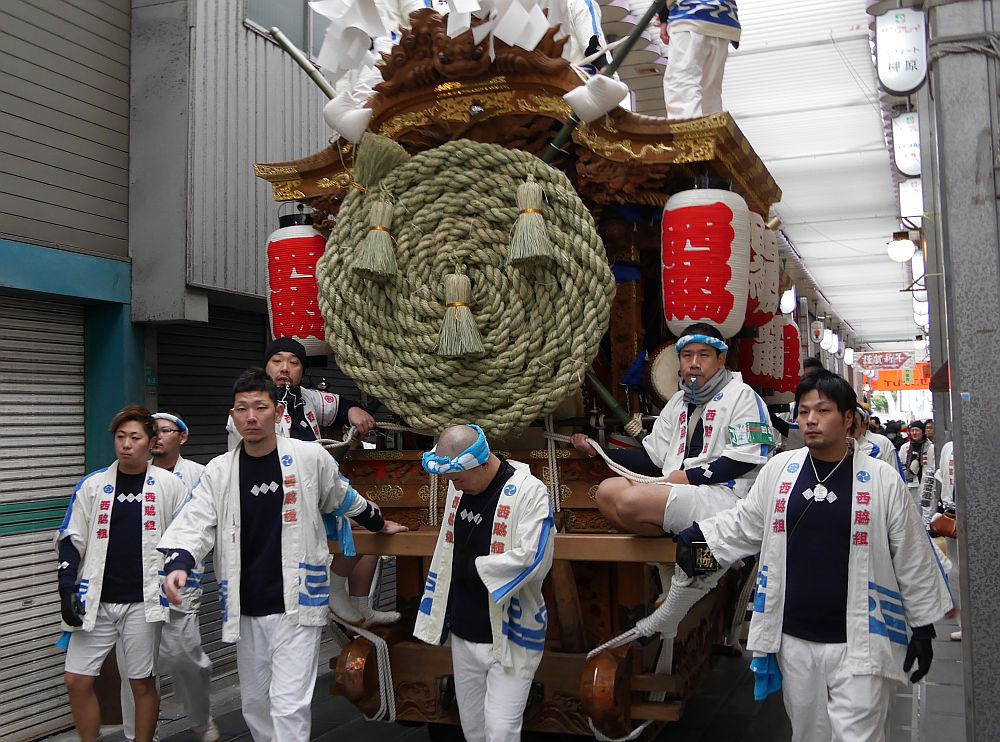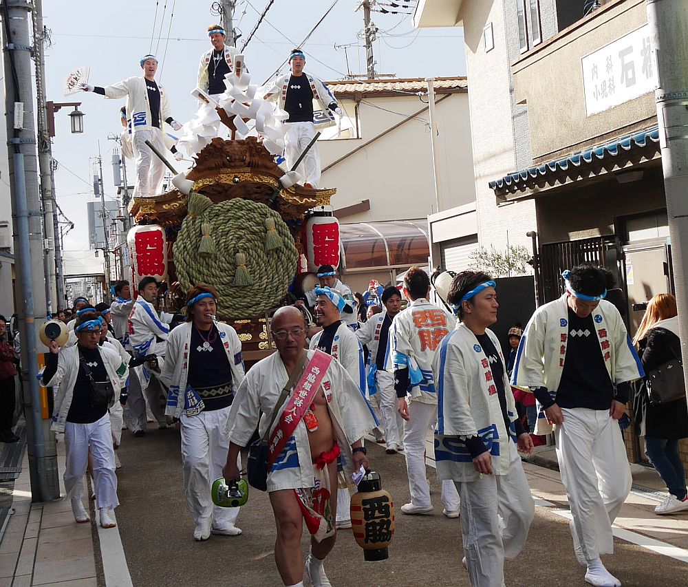 小休憩が終わって、お渡り筋を進む西脇組地車