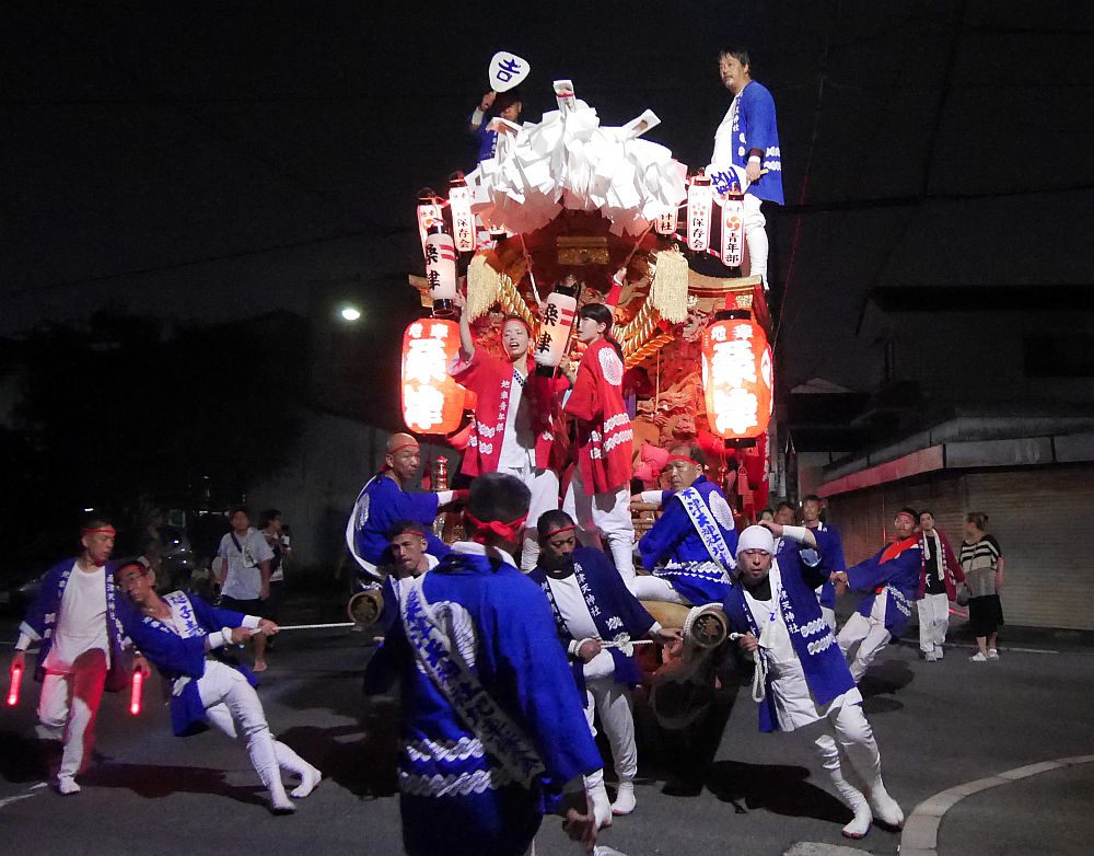 桑津地車のええ雰囲気の灯入れ曳行が続きます。