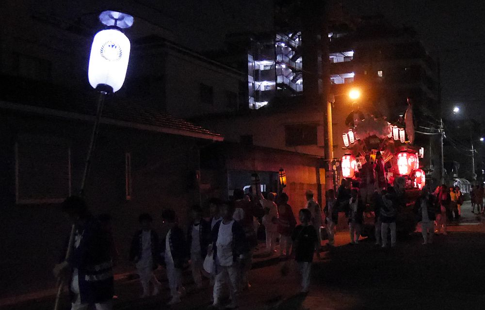 地車の前には弓張提灯を手にした赤ハッピの