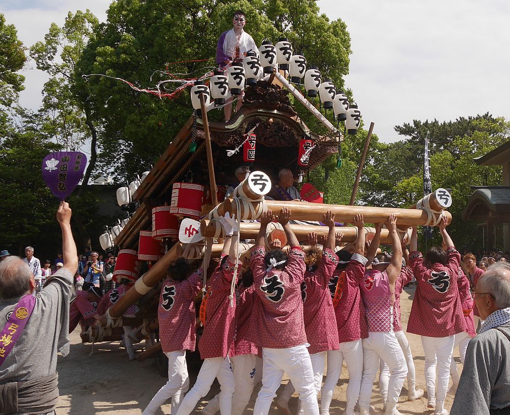 平成30年5月4日、東灘区の御影地区地車宮出を見に行ってきました。 御影地区の氏神様、弓弦羽神社の例大祭は5月3日4日に行われます。 そして御影地区の地車8台は4日の本宮朝に弓弦羽神社へ宮入します。 いつもはその宮入を見物しているのですが、今年は午後1時半からの宮出を 見に行ってきました。 ここでは宮出5番目から7番目、中之町、弓場、東之町の3台の宮出画像を 紹介します。 では、東灘区の御影地区地車宮出画像その2をご覧下さい。