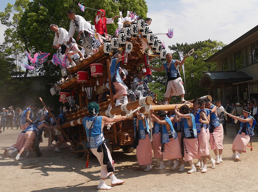 平成30年5月4日、東灘区の御影地区地車宮出を見に行ってきました。 御影地区の氏神様、弓弦羽神社の例大祭は5月3日4日に行われます。 そして御影地区の地車8台は4日の本宮朝に弓弦羽神社へ宮入します。 いつもはその宮入を見物しているのですが、今年は午後1時半からの宮出を 見に行ってきました。 ここでは宮出8番目、中御影の宮出画像を紹介します。 では、東灘区の御影地区地車宮出画像その3:中御影をご覧下さい。