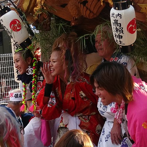 ここでは合同曳行後の鶴見地車庫前での打ち別れその2、
