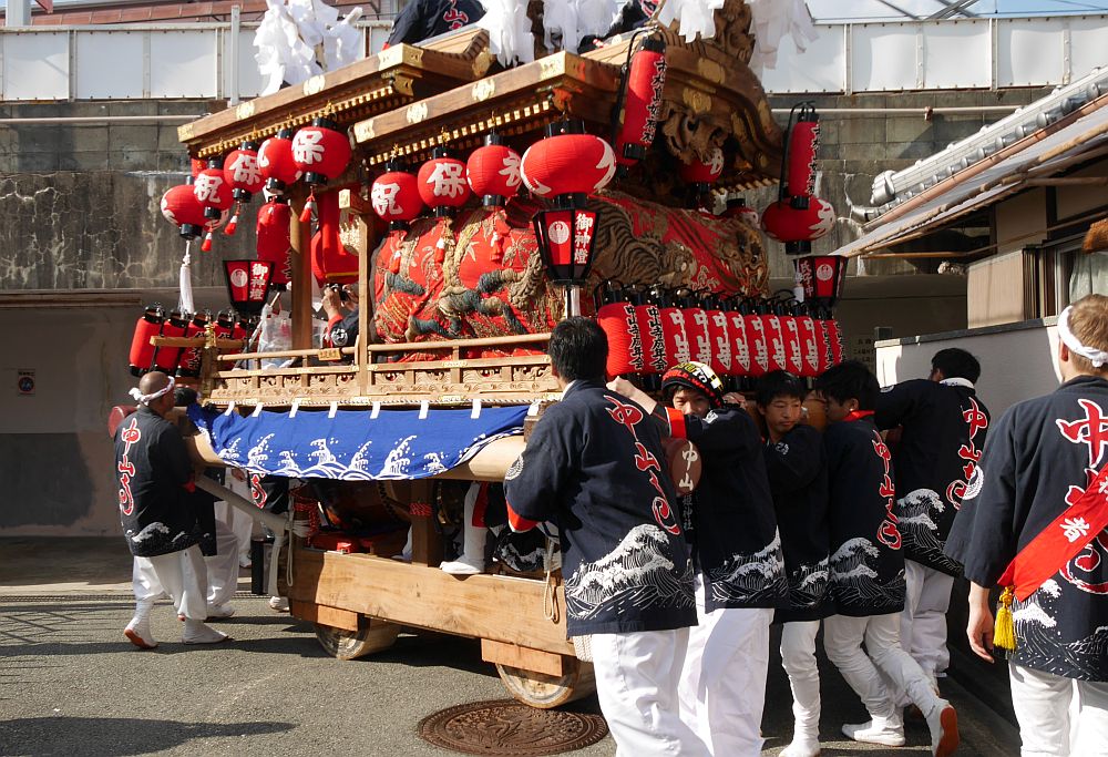 阪急中山観音駅の南側のかなり狭い道を進む中山寺地車