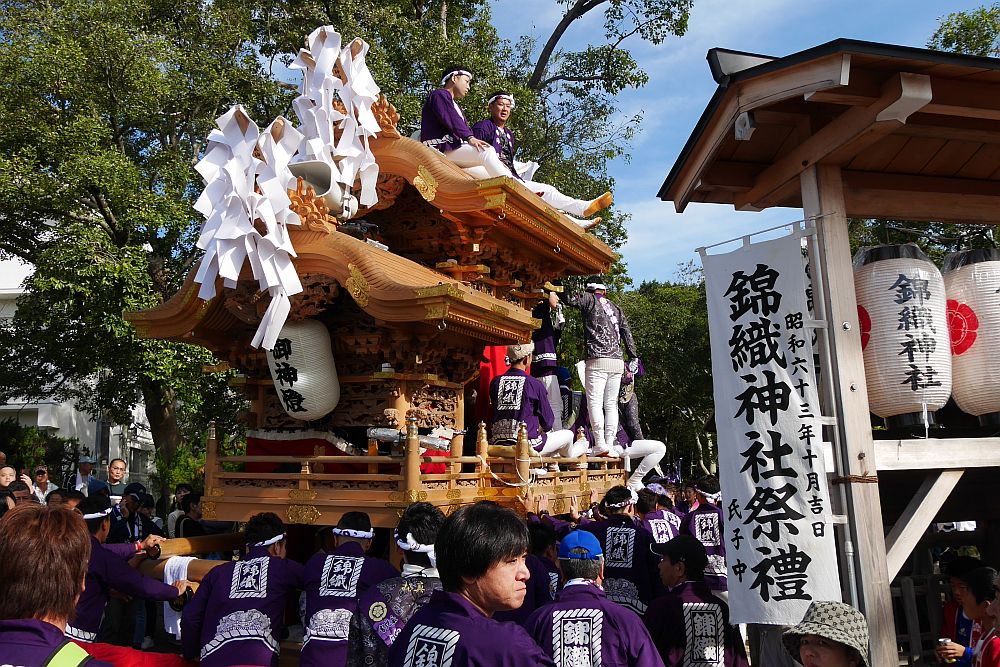 錦織神社には近隣の9台の地車が土曜日の朝9時頃から順次宮入します。