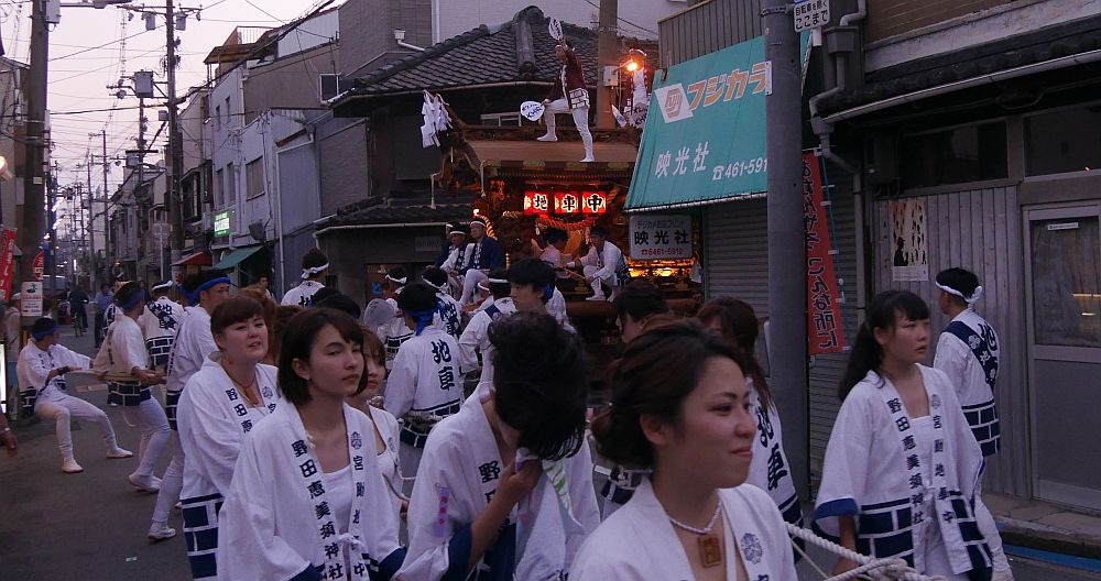 野田小学校前で休憩中の野田恵美須宮附き地車