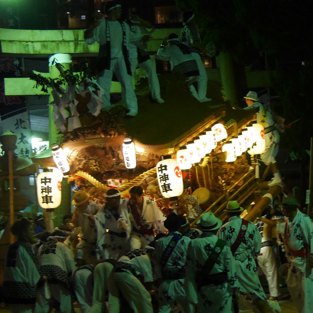 宮入1番、北之町の枕太鼓が境内を進みます。
