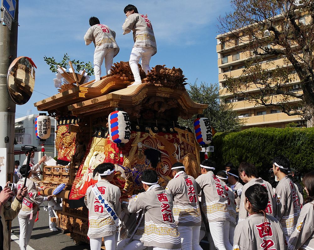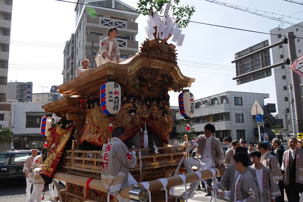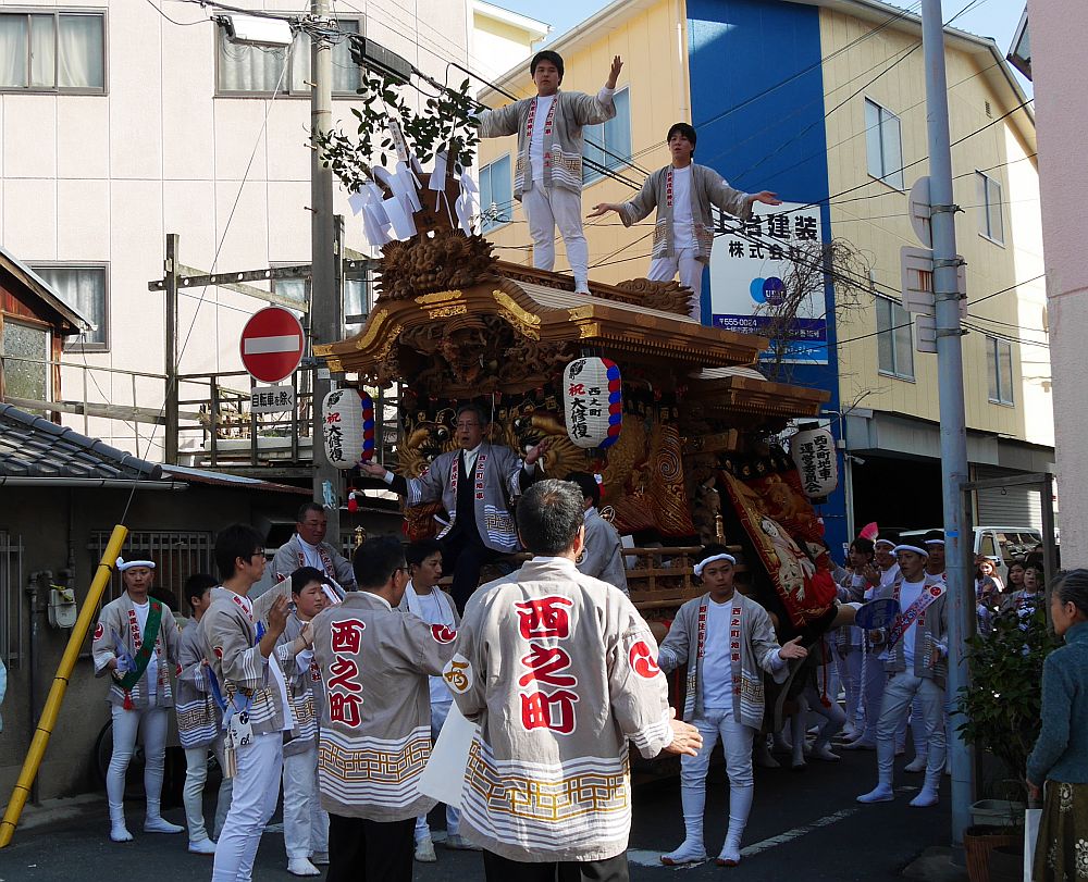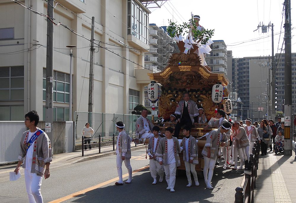 歌島橋南交差点付近から戻っていく野里西之町地車