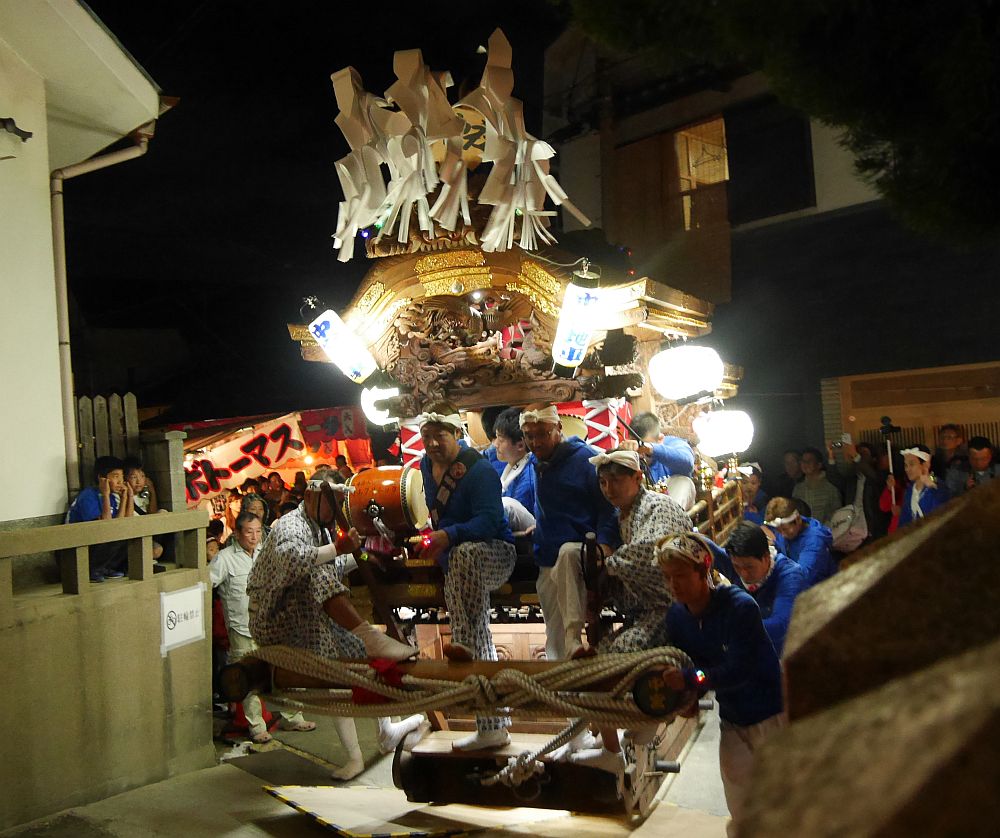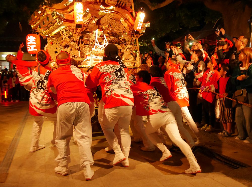 平成30年10月28日、旭区の大宮神社3町合同宮入を見に行ってきました。 旭区に鎮座する大宮神社の秋祭りには旭区の生江と中宮、そして都島区の 内代の3町地車が合同で宮入します。 中宮の方から午後7時から3町合同宮入すると教えていただけたので、早速 見に行ってきました。 まずは生江 中宮の宮入画像を紹介します。 では、遅くなりましたが、旭区の大宮神社3町合同宮入画像その1:生江・中宮をご覧下さい。