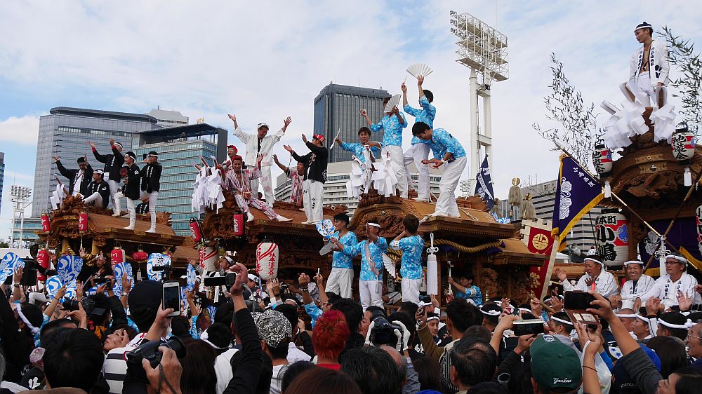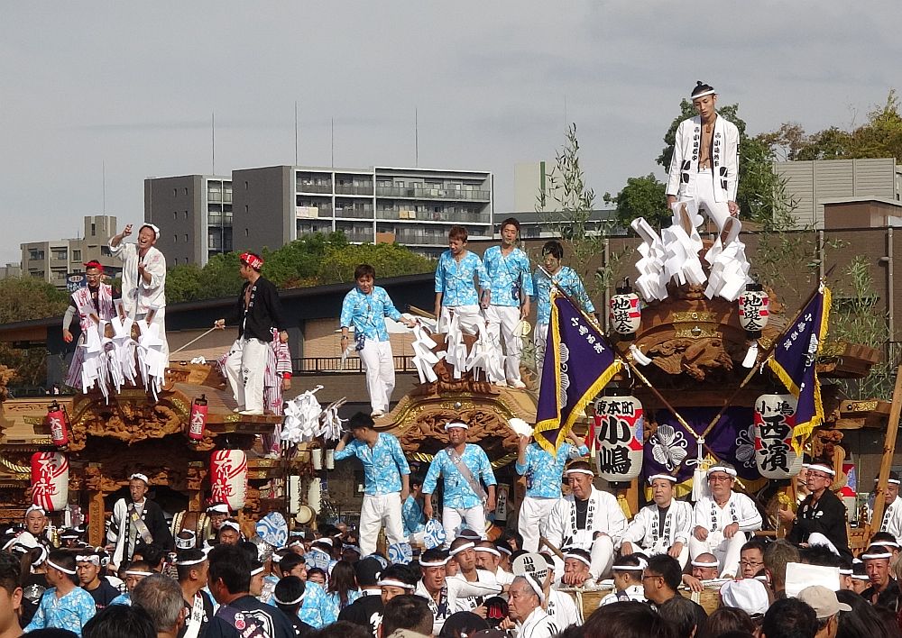 非常にたくさんの観客を魅了して引き上げる尼崎の2台