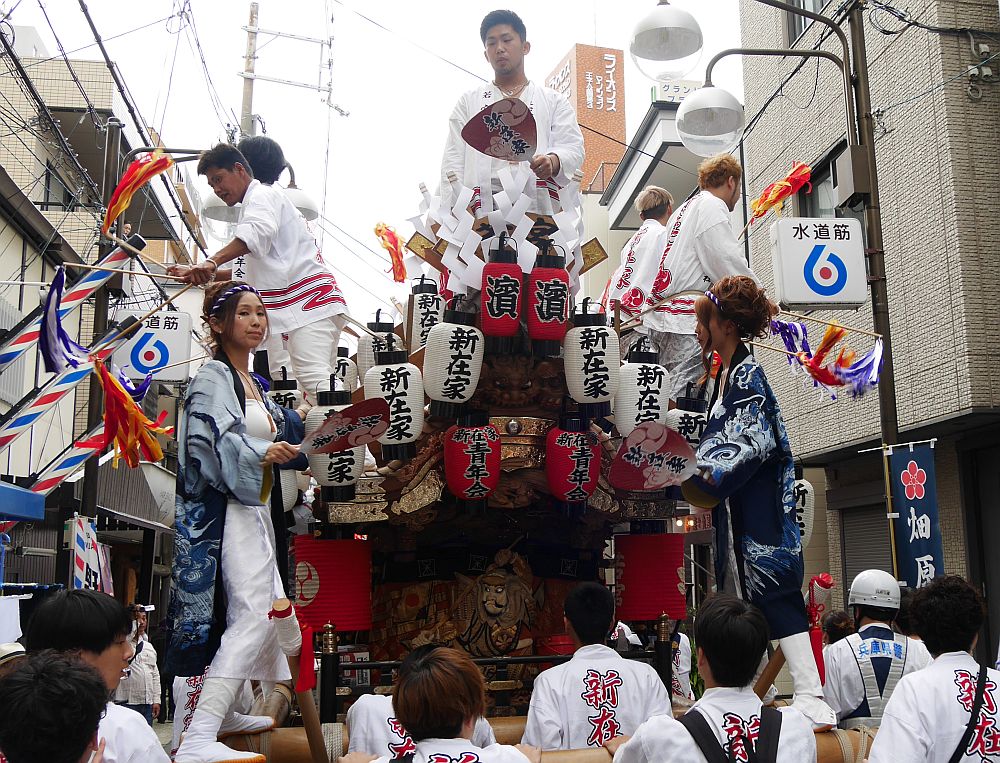 地車の4隅には女性4人の姿。