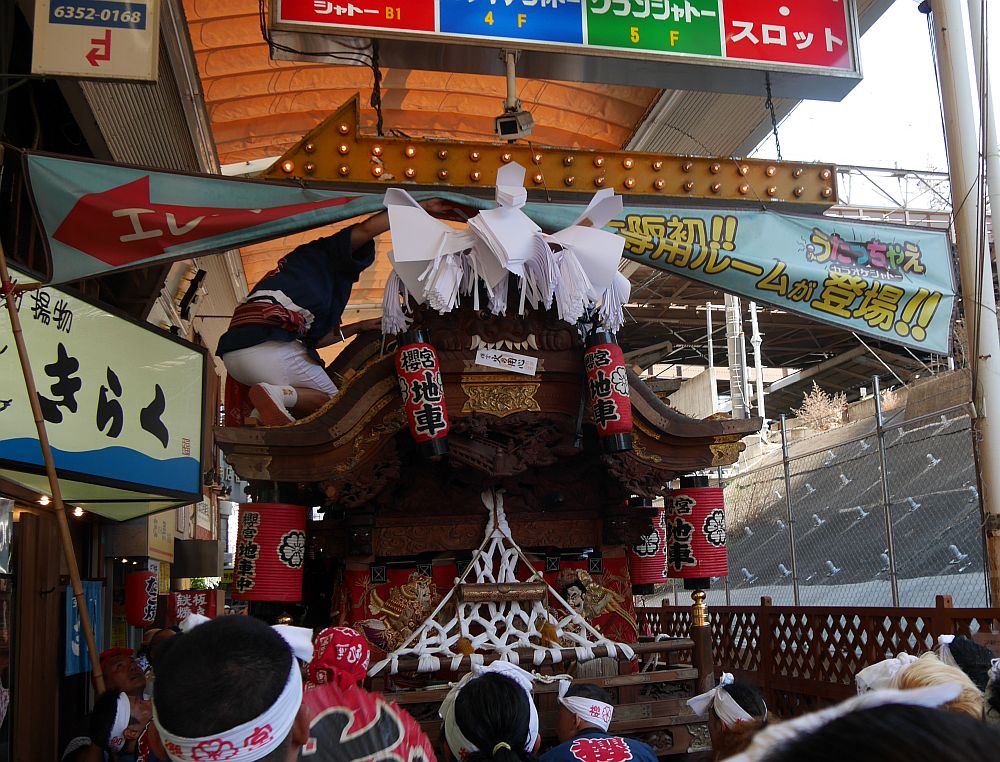 商店街曳行中の櫻宮地車を発見(^^)/