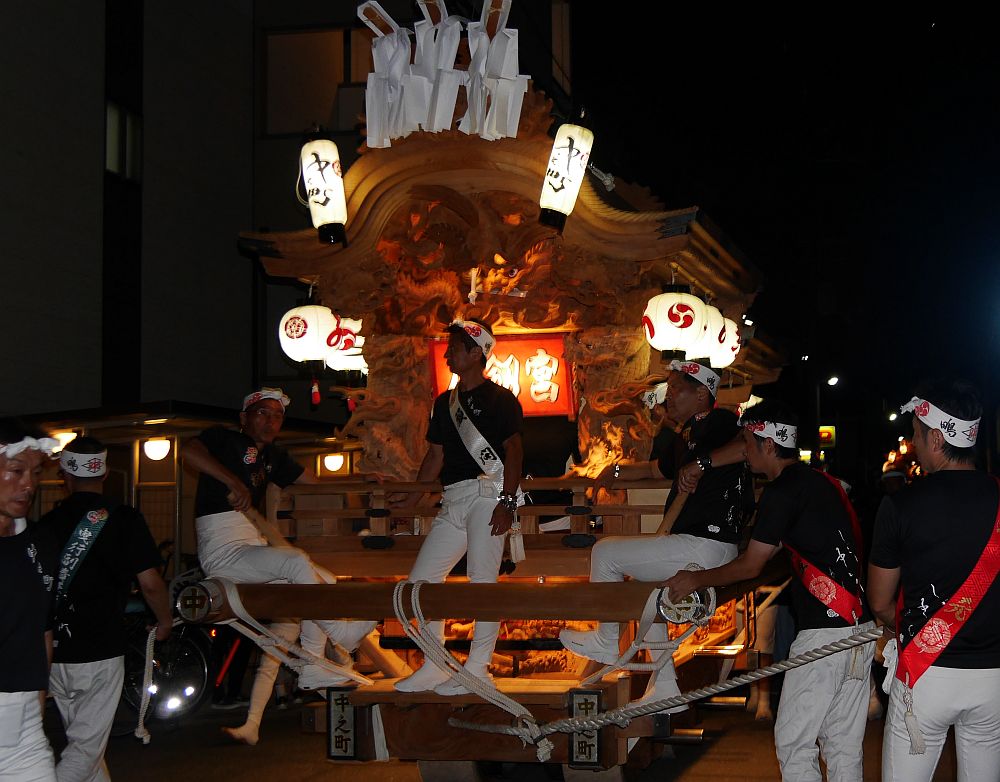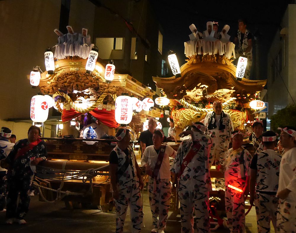 一斉に鉦太鼓が打ち鳴らされ、永田町地車が頭を下げています。
