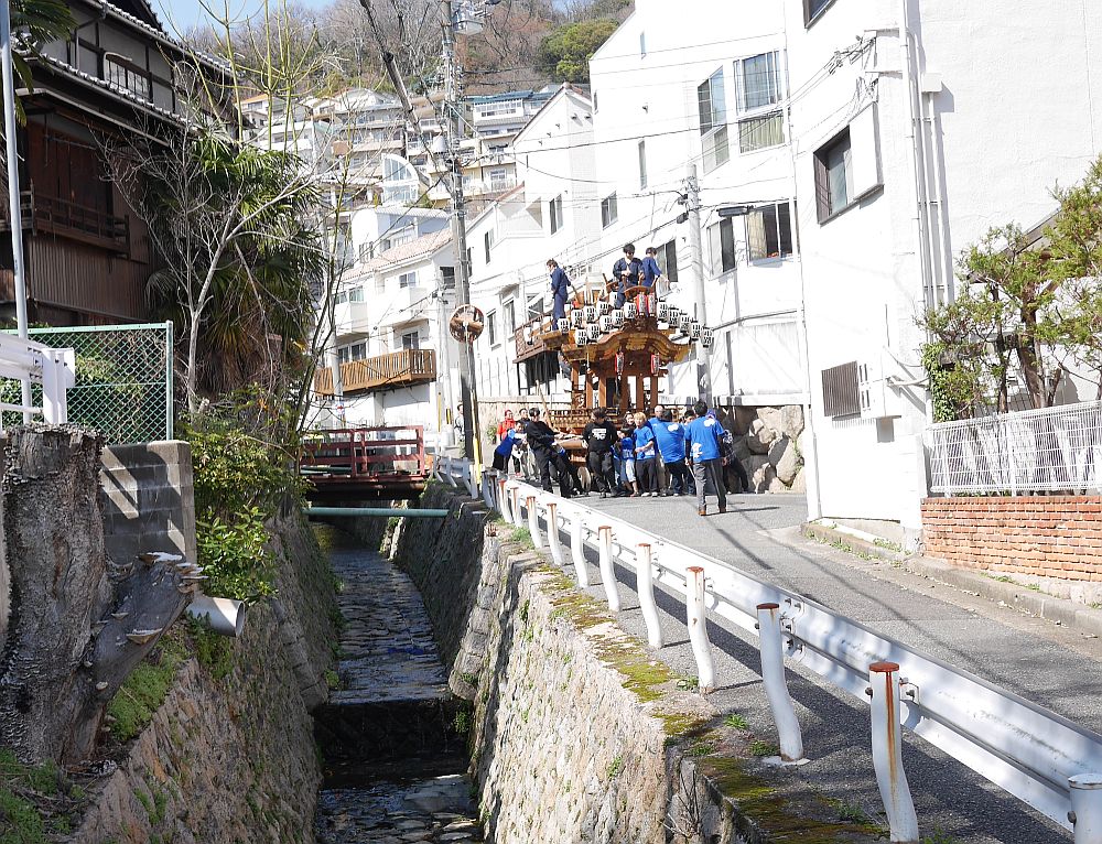 平成30年3月17日、東灘区本山地区の小路地車大屋根改修試験曳きを見に行ってきました。