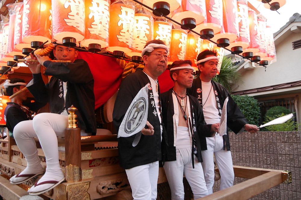 午後6時頃に地車小屋を出発した正覚寺地車は