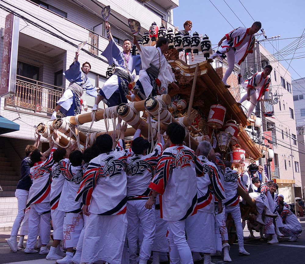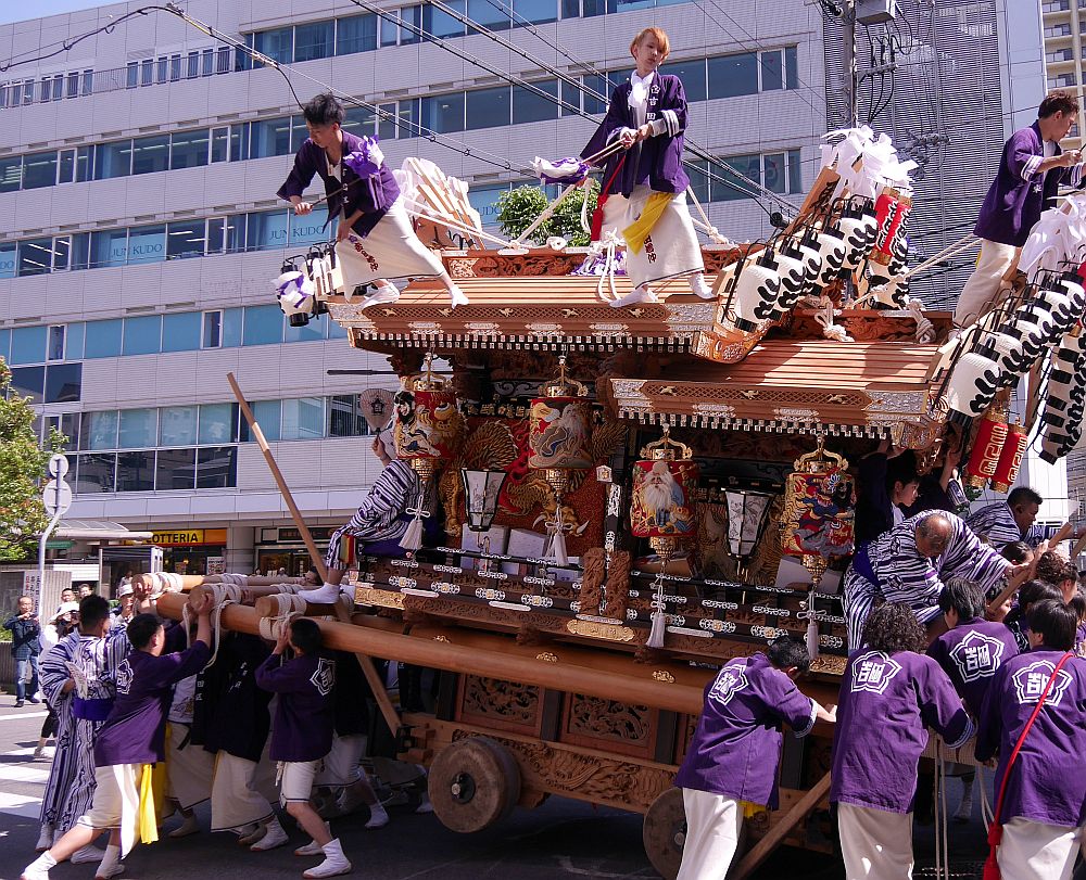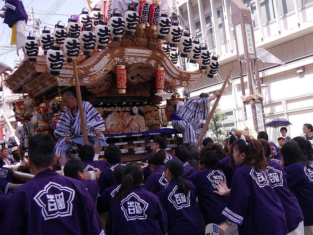 たくさんの女の子たちが後方から地車を押してます。