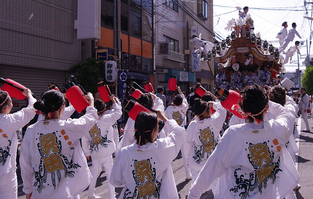 連合曳きの見どころはいくつもありますが、ここ数年は午後2時から3時頃の