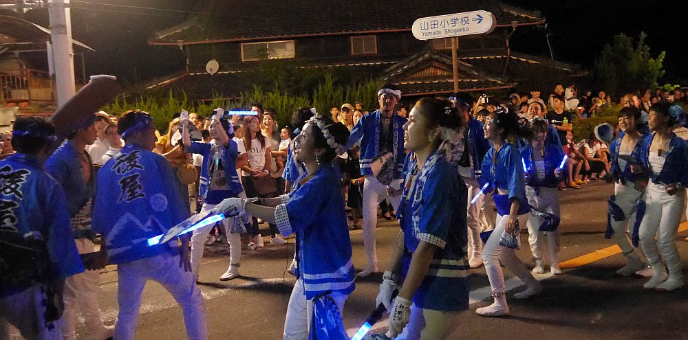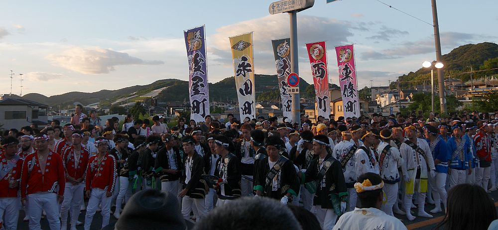 セレモニーが終わってだんじりの方へ向かう各町青年団