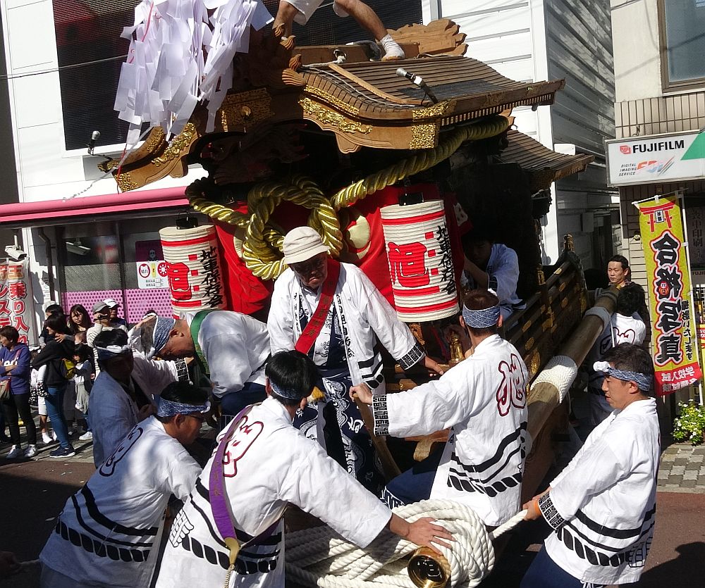 稲田旭町地車が駅前へ入ってきました。