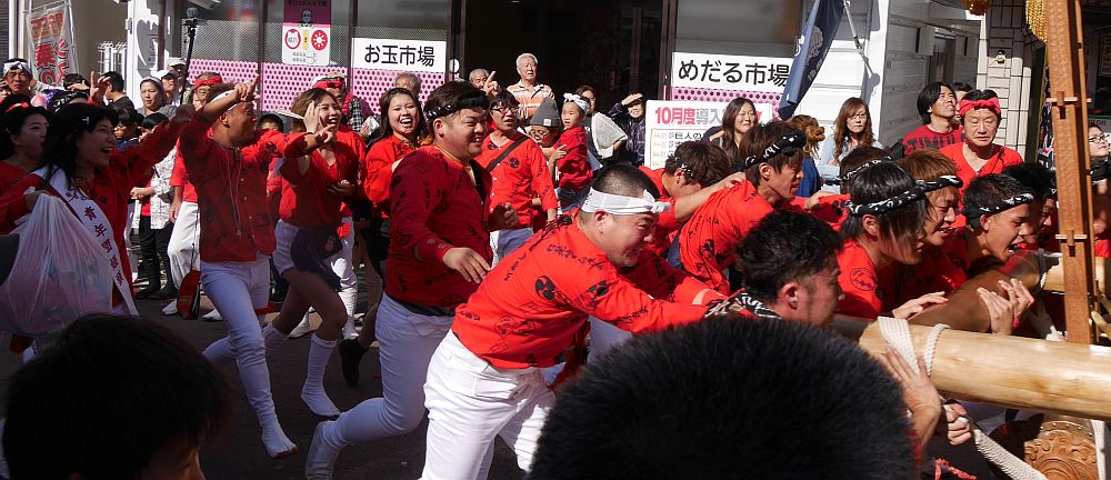 1分後、稲田旭町の曳き手が