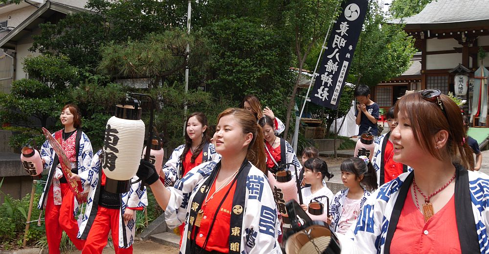 鉦太鼓半鐘のお囃子とともに境内を進みます。