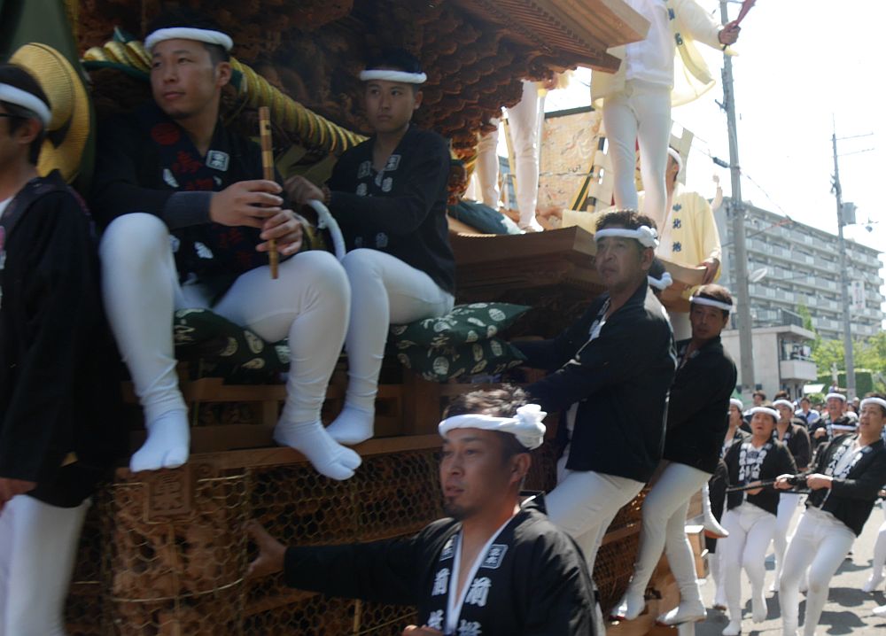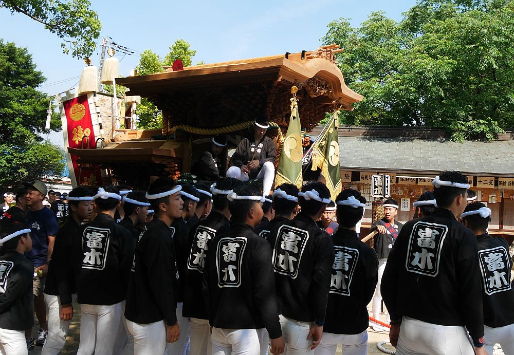 澄み渡った青空の下、朝陽を背に受けて進む富木地車