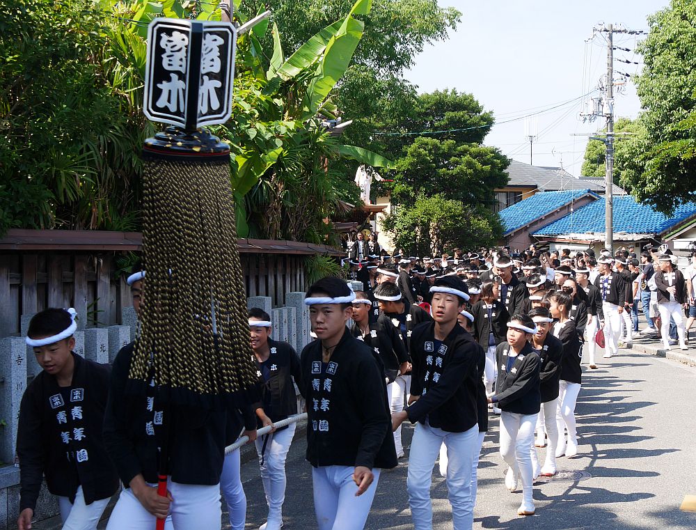 午前9時過ぎ、纏を先頭にお披露目曳行出発です。