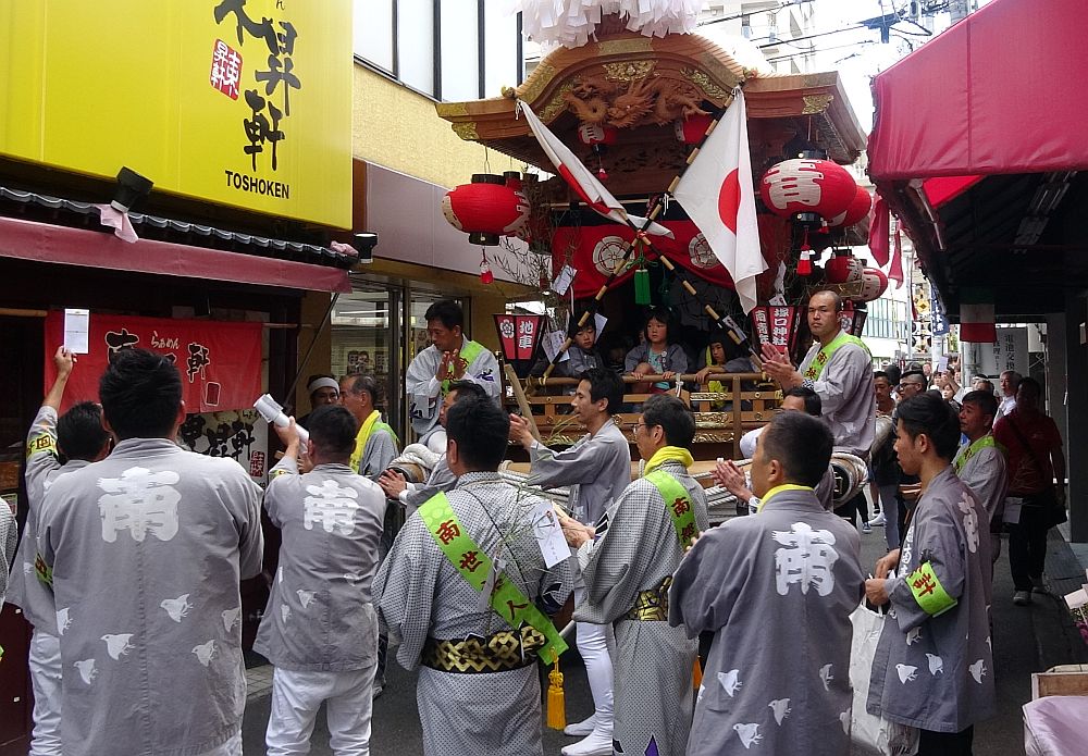 移動するため塚口駅近くまで来ると地車のお囃子の音が聞こえてきました。