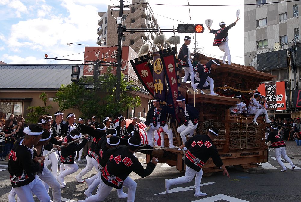 セレモニー終了後、津久野駅周辺での7町合同曳行を撮影してきました。