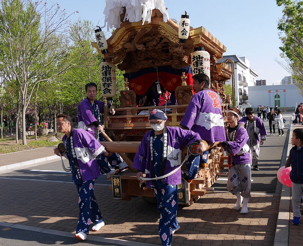 ステージパフォーマンス中での移動曳行なので、お囃子は無しです。