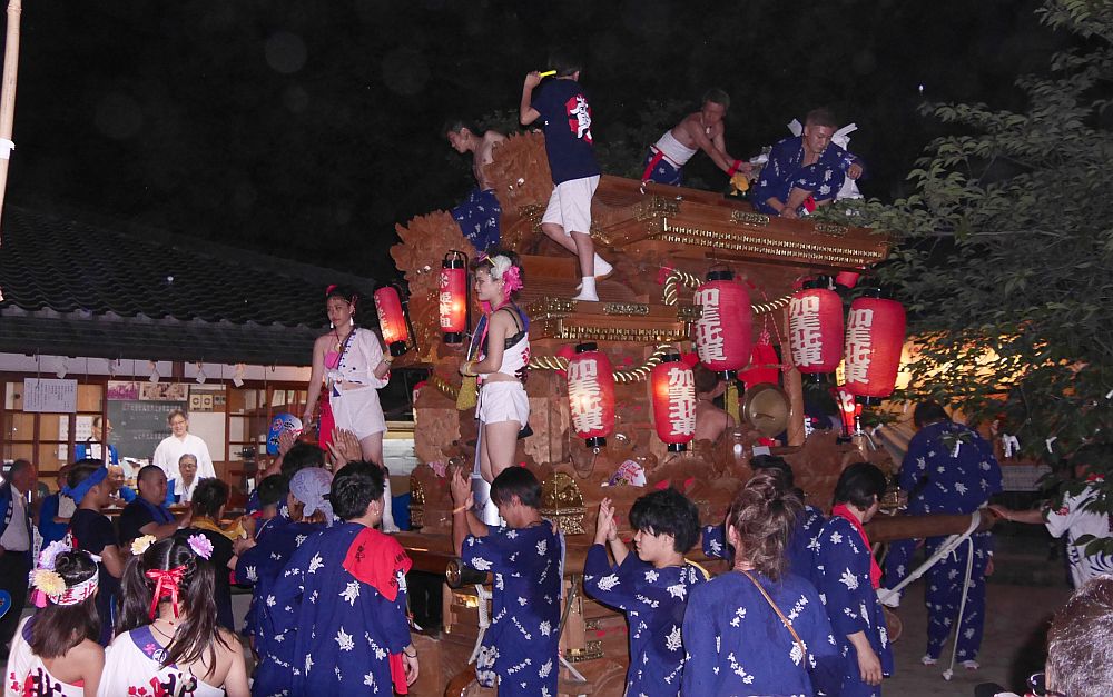 奉納囃子に合わせて踊る屋根方さんと子どもの踊り手さん。