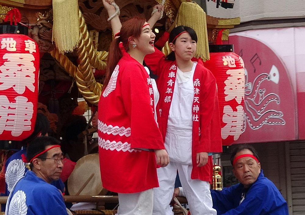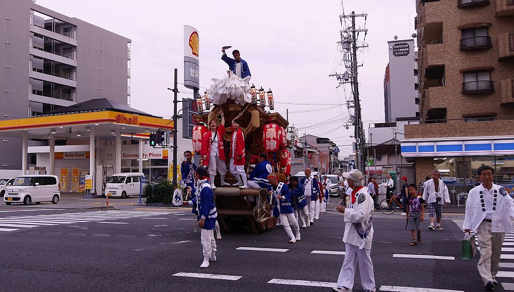 桑津も地車の前後に高張提灯のある曳行スタイルです。